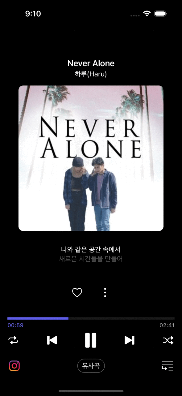플레이어 컨트롤러 버튼들과 마찬가지로 MusicPlayer의 정보를 보여주며, 유저 인터랙션을 통해 싱글톤 객체를 컨트롤 하는 역할이다.