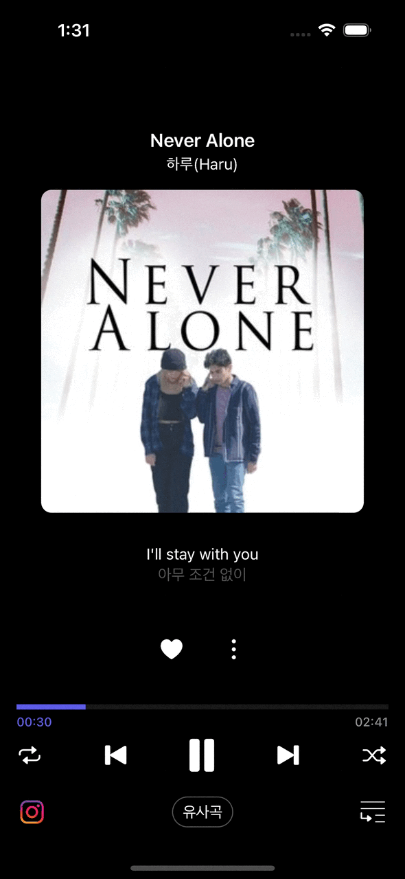 이렇게 Seekbar 클래스가 완성되었다. Seekbar는 PlayerController와 LyricsContoller에 서로 다른 인스턴스로 각각 적용했다.