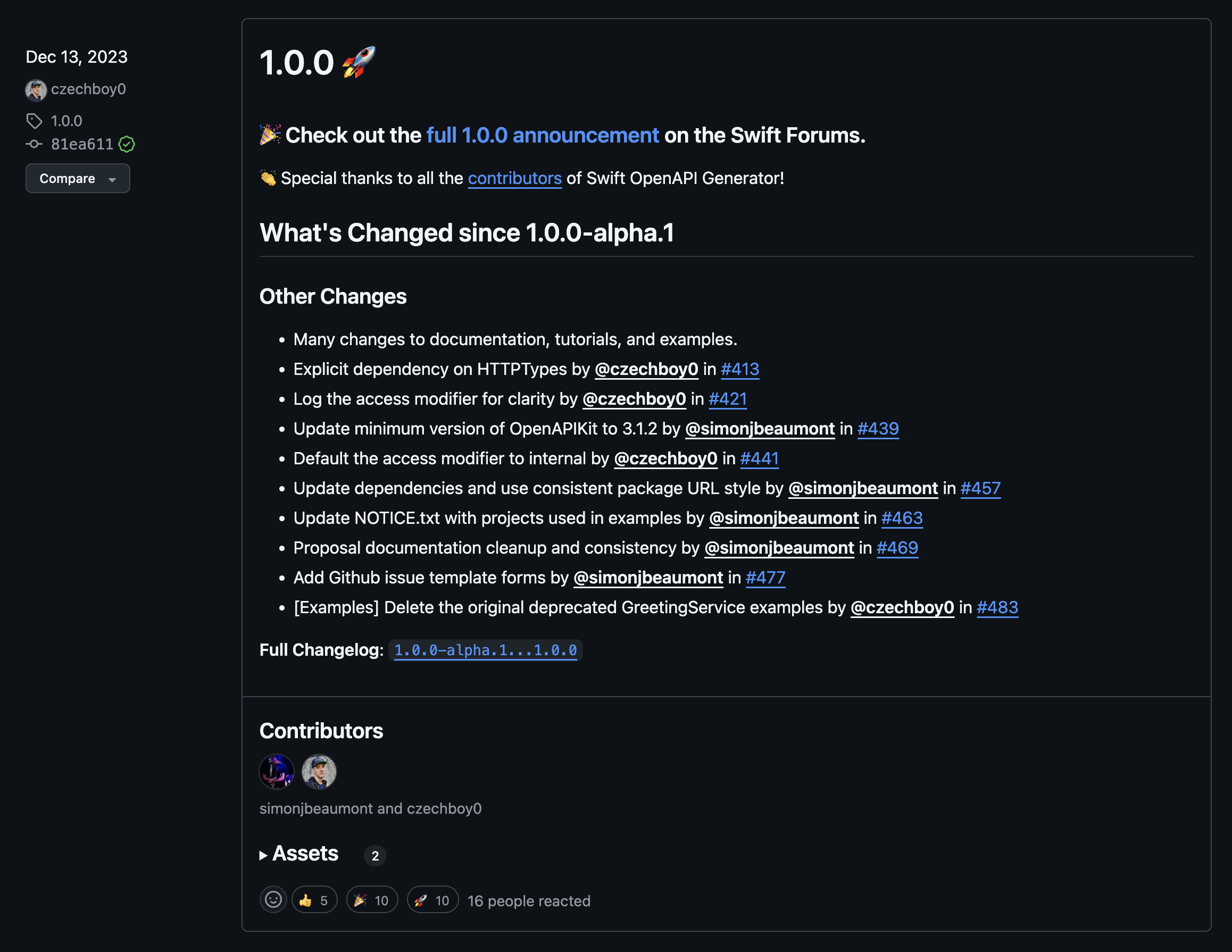 swift의 경우.. 1.0.0 버전이 23년 12월 13일에 릴리즈된 따끈따끈한 녀석이다.
