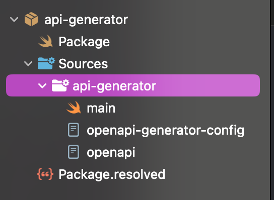 나는 프로젝트에 client.swift, type.swift 를 포함해 별도의 모듈로 만들었고, Tuist가 해당 파일들을 가지고 모듈을 생성하도록 했다.