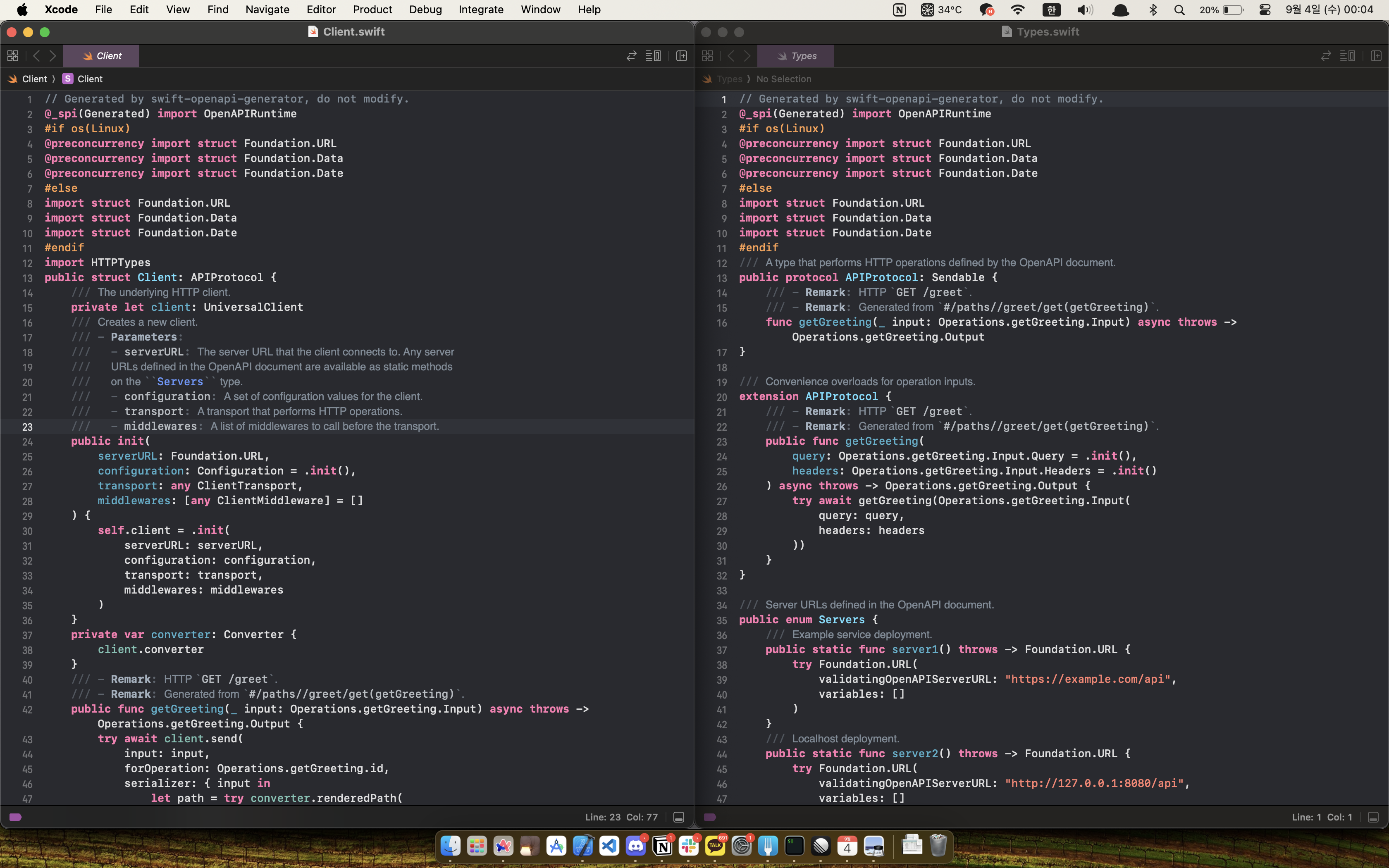 let greeting = try await GreetingClient().getGreeting(name: "App")(OpenAPIUrlSession 라이브러리 임포트 필요!)